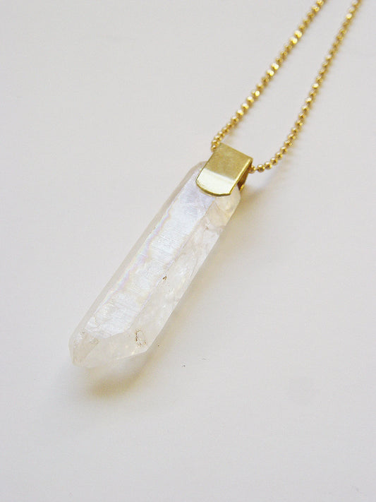 Angel Aura Quartz Crystal Necklace: Gold Filled Pendant, Boho Bride Raw Rainbow gemstone Jewelry