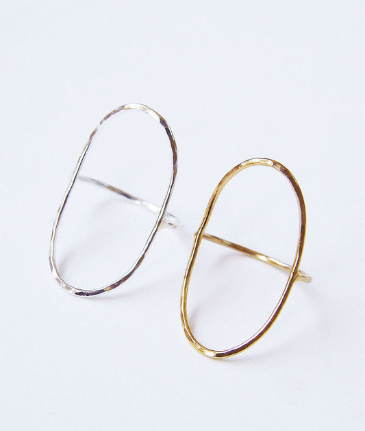 14k Gold Filled Open Oval Statement Ring: Celestial Saturn Band, Modern Wedding Jewelry