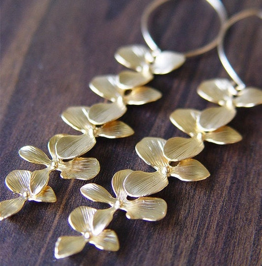 14K Gold Filled Orchid Flower Dangle Earrings: Boho Bridal Flower Cluster Jewelry