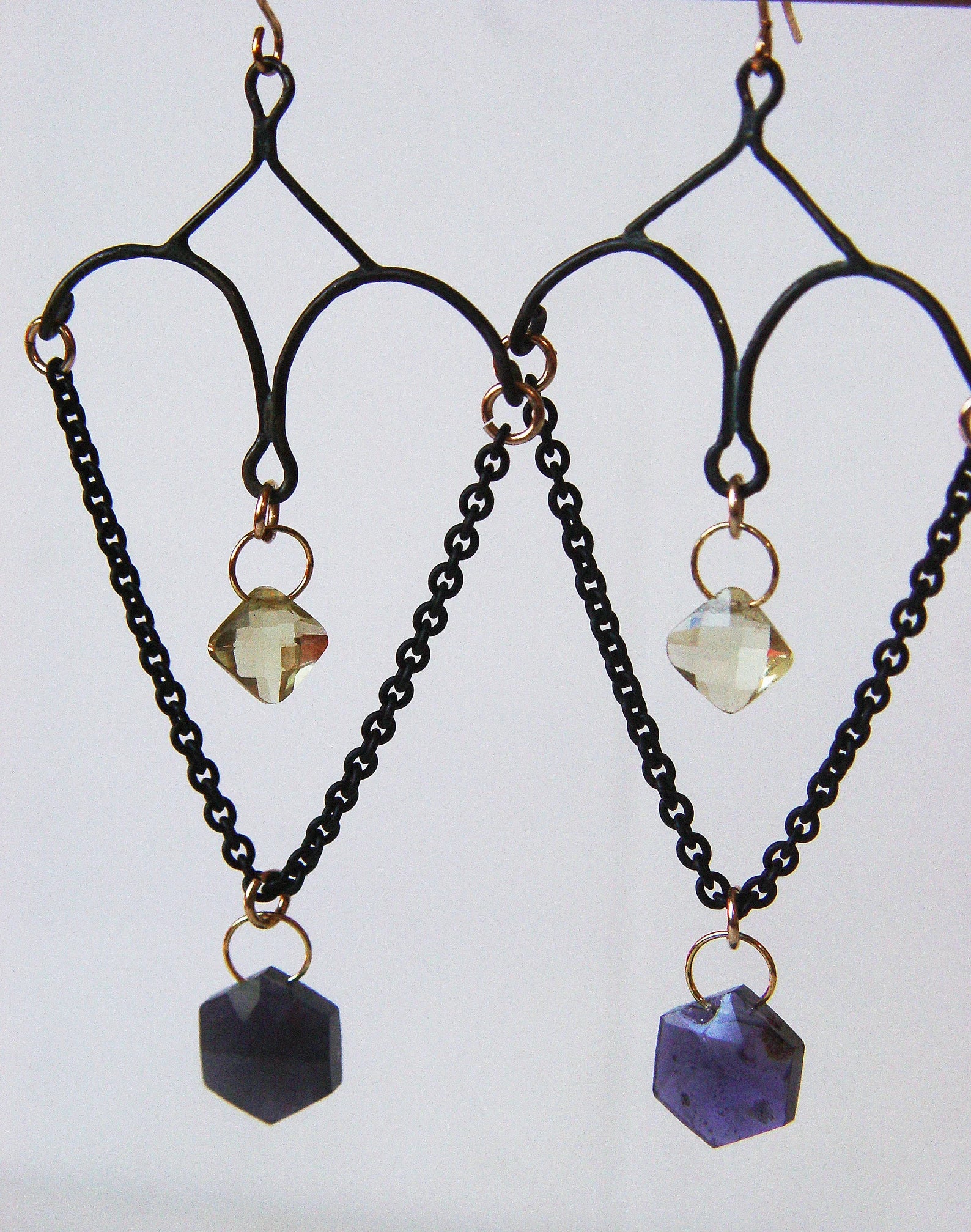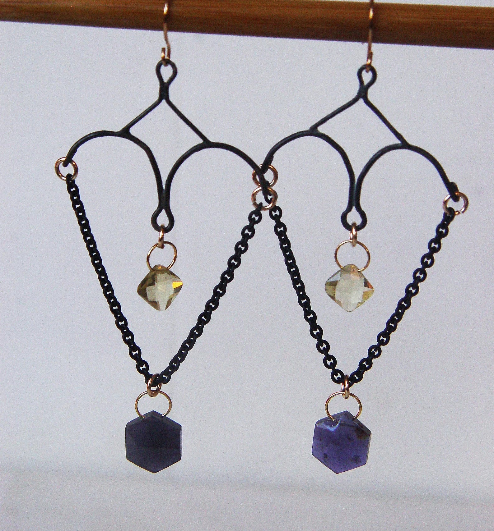 π Gothic Chandelier Earrings β Halloween Statement Jewelry | Blackened Sterling Silver & 14k Gold Filled | Custom Gemstones | Handmade.